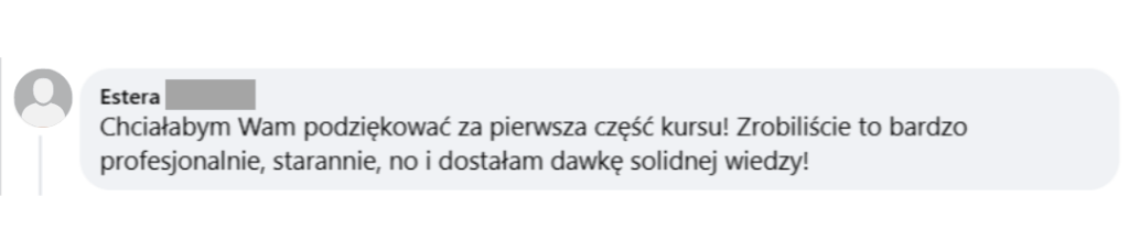 Jeżeli kurs nie spełni Twoich oczekiwań, oferujemy 100% zwrotu. Zaufaj nam – na 127 sprzedanych kursów mieliśmy tylko jeden zwrot.